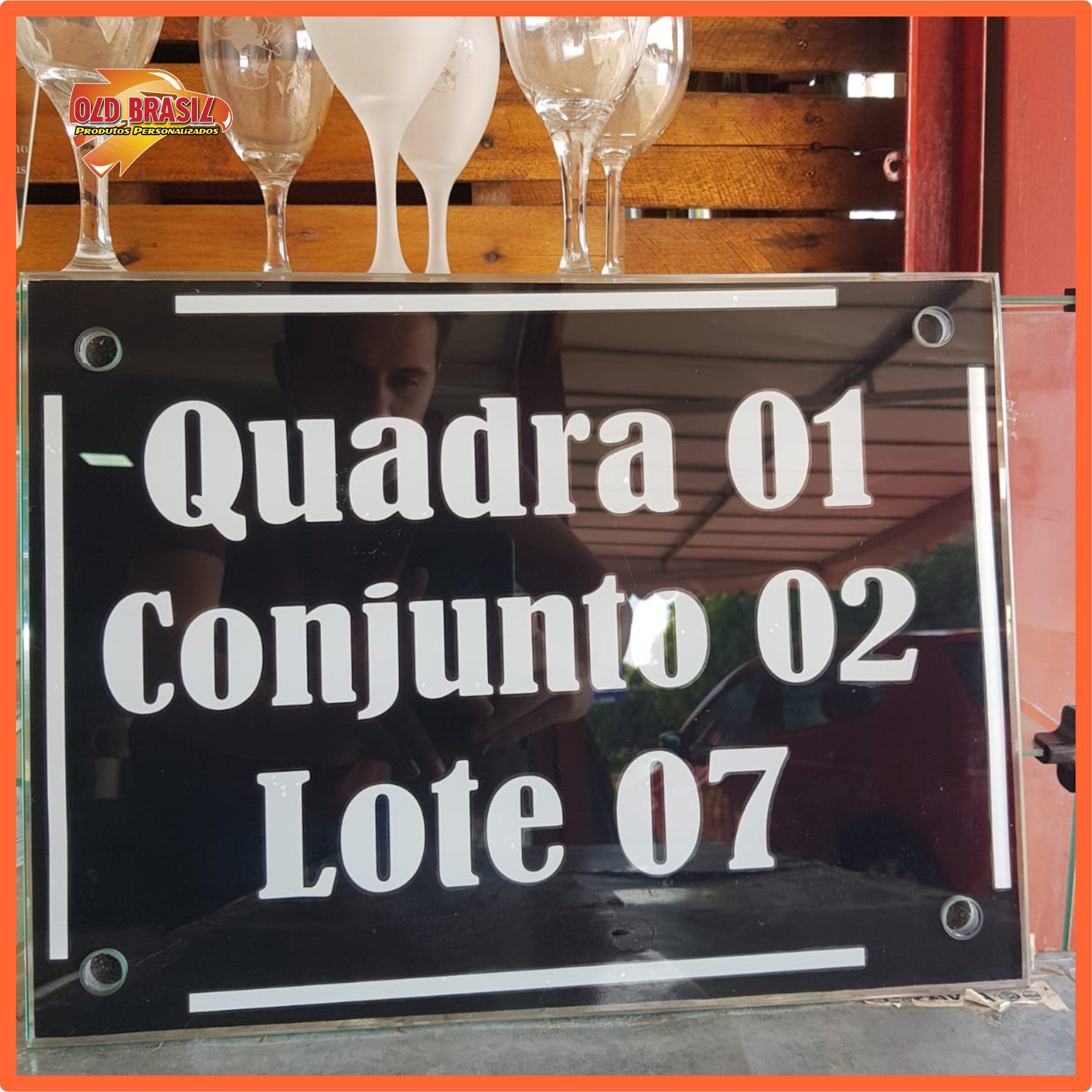 Placa de Endereço 40X30 de vidro - Personalizada (PRETO + BRANCO)